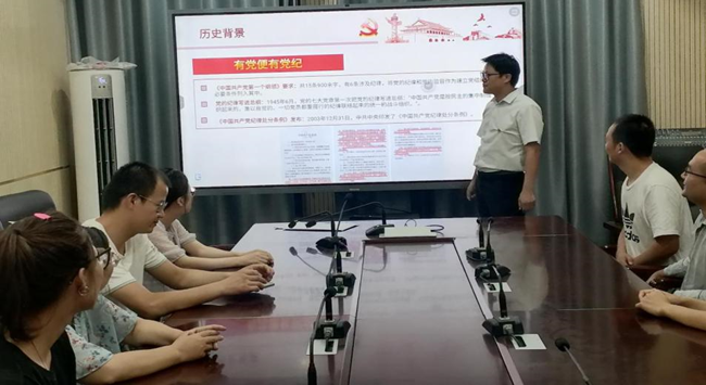 教师党支部书记赵俭波同志在化工楼办公楼204会议室,为化学系全体教师党员讲述了一堂以《党的纪律》为主题的教育党课,全体教师党员参加。