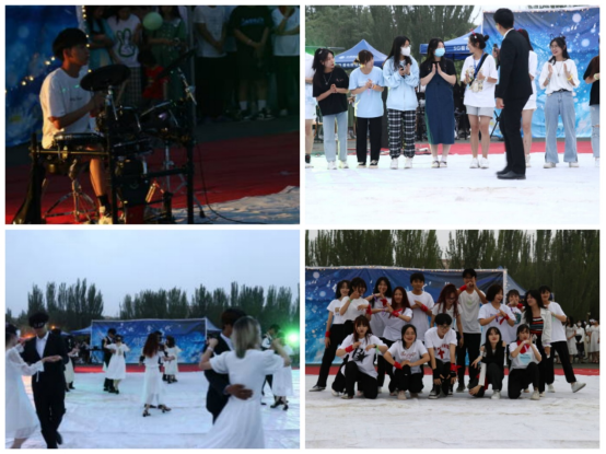 晚会现场,参与演出的同学们盛装出席,随着极富节奏感的音乐声响起,参与演出的同学踩着轻快的节奏,激情迸发、活力飞扬,一度获得现场观众的阵阵掌声。舞蹈《告白气球》、《爱的华尔兹》用优美的舞姿,调动了现场的氛围,荏苒乐队倾情演唱,用歌声激励同学们不必等候炬火有一份热,发一份光,只要向上走,就会抵达目标。ING舞社、HDS协会的演出更是将现场的氛围拉到了高潮。在最期待的狂欢环节,师生们积极参与、热情高涨,在欢快的音乐声中翩翩起舞,手拉手跳起民族团结舞,心连心同叙民族团结情。