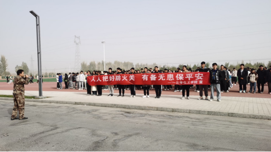 此次演练旨在落实消防安全宣传和教育培训常态化工作安排部署,增强学院师生消防安全意识与应急避险能力以及普及消防器材使用知识。学生办公室主任石建敏结合近期发生的火灾事故,要求全体师生员工提高消防安全意识,以此次灭火消防演练为契机,学习并掌握基础消防设施的使用,进一步把校园的消防安全工作做好,为持续推进平安校园不懈努力。学校保卫部工作人员对此次消防演练进行讲解,在讲解过程中保卫部老师为同学们普及灭火器和消防栓的使用方法及注意事项、日常防火措施、如何扑救初期火灾、遇到灾情如何自救自护等,并组织同学们现场演练。