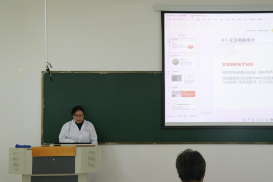 “艾”不沉默,禁毒有声团队于11月18日在信息楼A305开展了预防艾滋讲座,校医院阿曼古丽·热合曼、魏丽医生负责培训讲解。