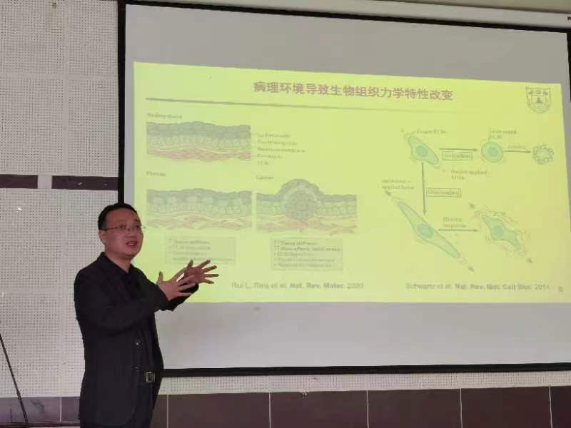 曹毅教授做了题为《水凝胶力学特性的精准设计与调控》报告,介绍了通过单分子力谱结合其它物理化学表征手段发现并定量表征了多种新型基元的力化学响应特性,揭示了力响应在生物分子构象变化和功能执行中的微观机制,提出自下而上模块化设计水凝胶力学特性的方案,发展了通过交联点和高分子网络结构优化水凝胶力学特性的一般性原则,获得了数种具有广泛生物医学应用前景的水凝胶材料。