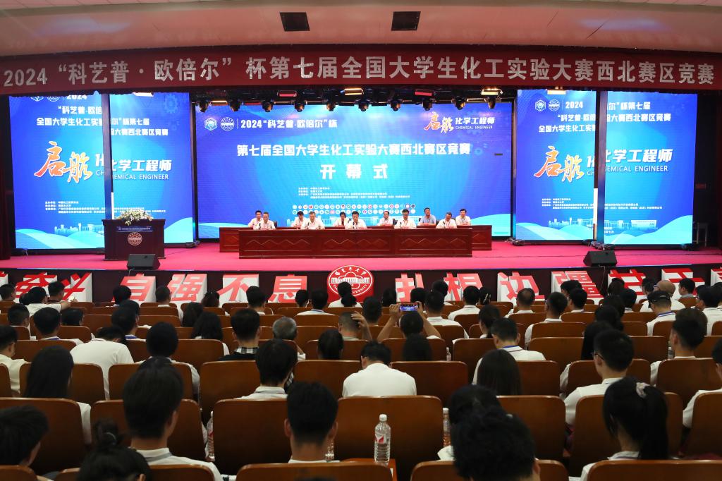 承办的“科艺普•欧倍尔”杯第七届全国大学生化工实验大赛西北赛区竞赛开幕式在我校文科楼报告厅隆重举行。来自西北地区47所高校的87支参赛队伍、指导教师及嘉宾485人欢聚一堂,共同参与了大赛的开幕仪式。
