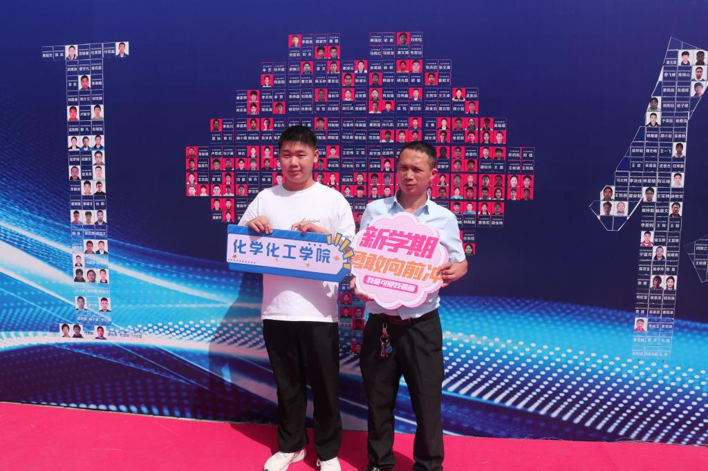 迎新现场设有各式各样的手举牌、人形立牌、特色相框等打卡区域,同学们及家长纷纷在打卡区拍照留念。手举牌拿起,“咔擦”一声,快门按下的一刻,定格住美好的瞬间。新起点,新开始,携手与共,一起迎接未来的求知之旅。