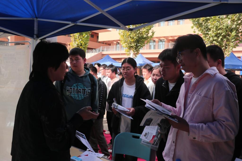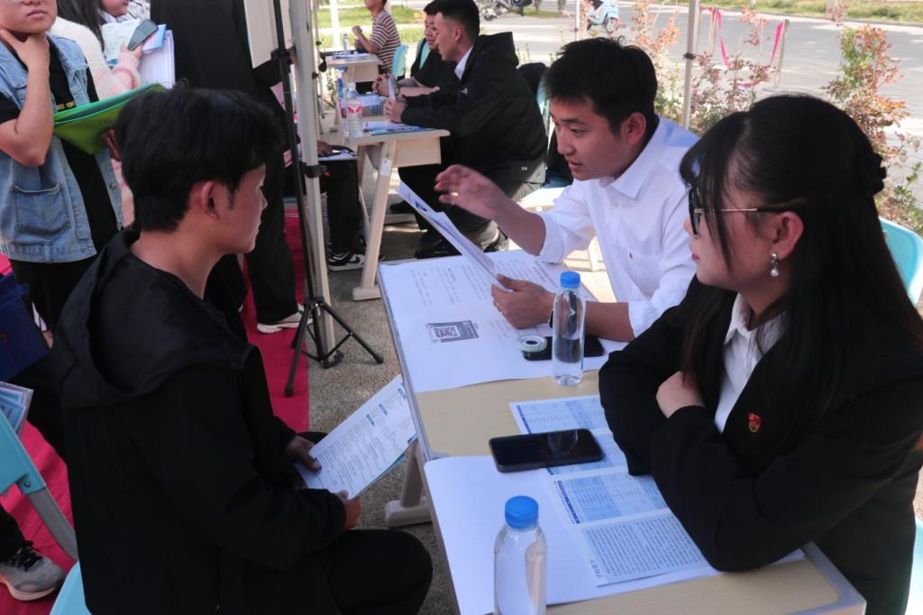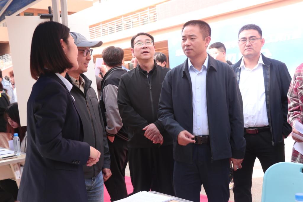 党委副书记马祥、学办主任石建敏在招聘会现场与2025届毕业生亲切交谈,详细了解用人单位人才需求状况并为用人单位推荐毕业生。