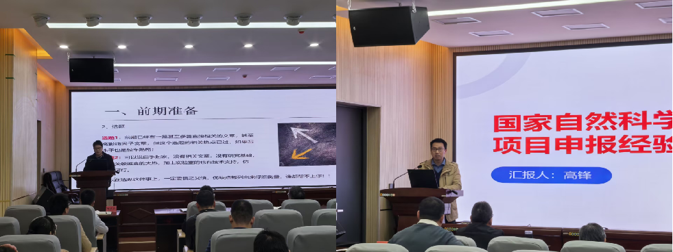 随后进入经验分享阶段。赵俭波教授从项目申报的前期准备、项目申报书撰写、后期打磨三个方面结合自己的理解与经验给现场老师们做了详细的介绍;高锋副教授主要以自己获批的项目申报书为例,详细讲解了项目申报书撰写过程中的关键环节以及需要注意的各类事项。现场老师们深感受益匪浅,尤其是首次打算申报国家自然科学基金项目的年轻老师,为他们提供了宝贵实操经验。