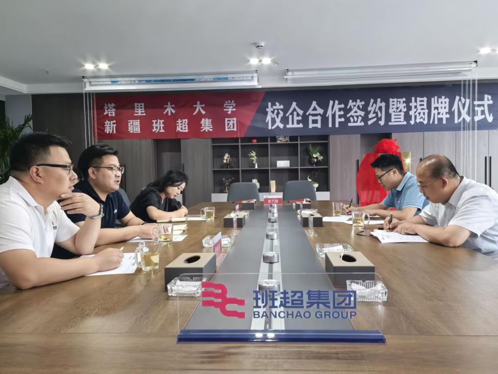 此次签约暨揭牌仪式在班超大厦四楼会议室举行,双方就高等教育与产业需求精准对接并展开深入探讨,旨在为区域经济高质量发展注入强劲动能。此次活动由班超集团研究院副院长侯先亮博士主持,新疆班超集团有限公司副总裁刘古锋、人力资源部总经理魏思梦等企业代表出席。