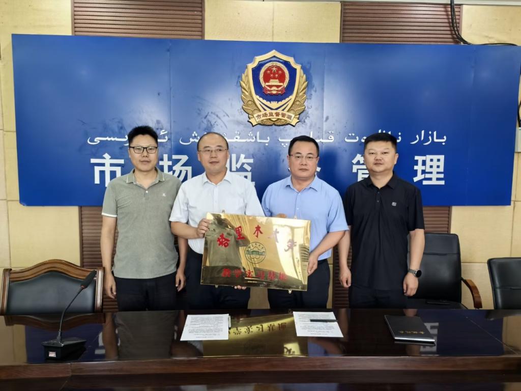 为深化校企合作,拓宽学生实践教学平台,2025年7月1日,党委副书记、院长周继升教授率化学系主任赵俭波一行赴第一师阿拉尔市市场监督管理局成功签订合作协议,并举行实习基地挂牌仪式。第一师阿拉尔市市场监督管理局党组书记、局长叶戬,第一师阿拉尔市食品药品检验所所长李国柱对学院代表的到来表示热烈欢迎。
