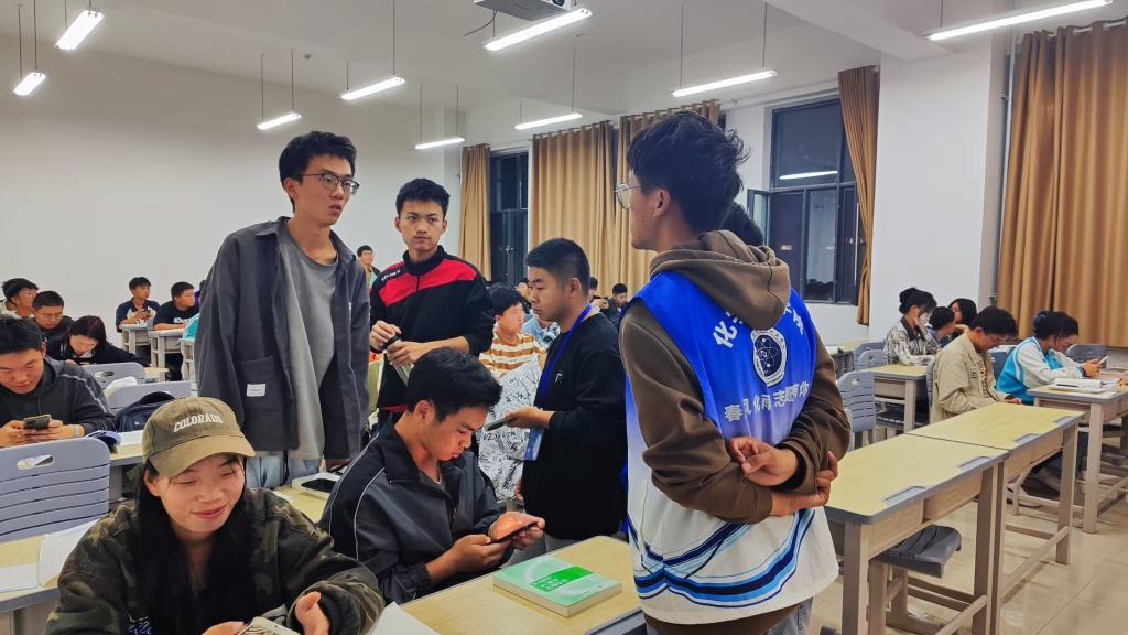 为响应院团委关于大学生走出宿舍,开展志愿活动的号召。春风化雨青年志愿者协会利用大一新生晚自习时间在新1教学楼楼开展了“大学生如何参与志愿活动”进班培训。
