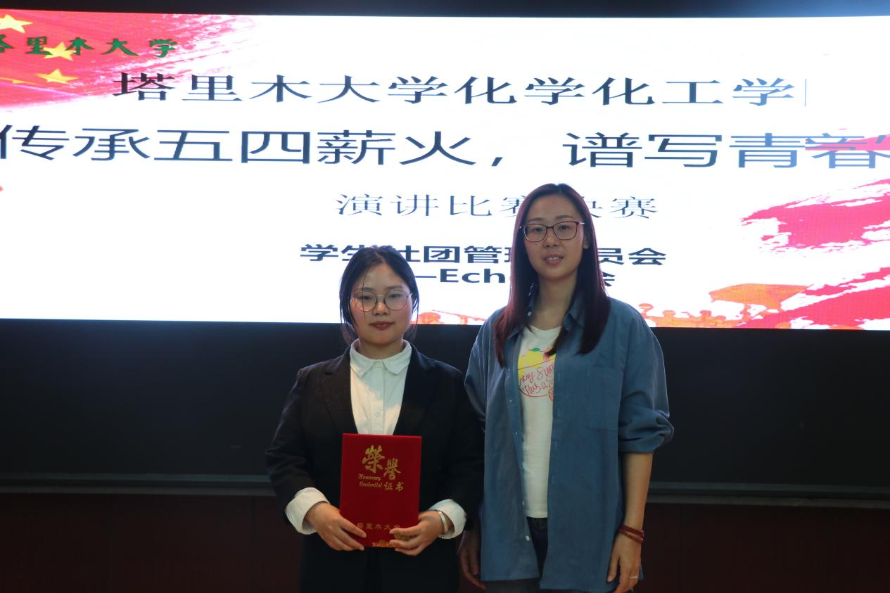 刘精范同学说,非常感谢学院举办的这次演讲比赛,它让热爱演讲的同学有了一个展示自我的舞台,比赛落幕,成长继续,我将不断践行“自强不息,求真务实”的塔大校训,传承五四薪火,努力成为爱国爱疆、担当奉献的新时代胡杨青年。