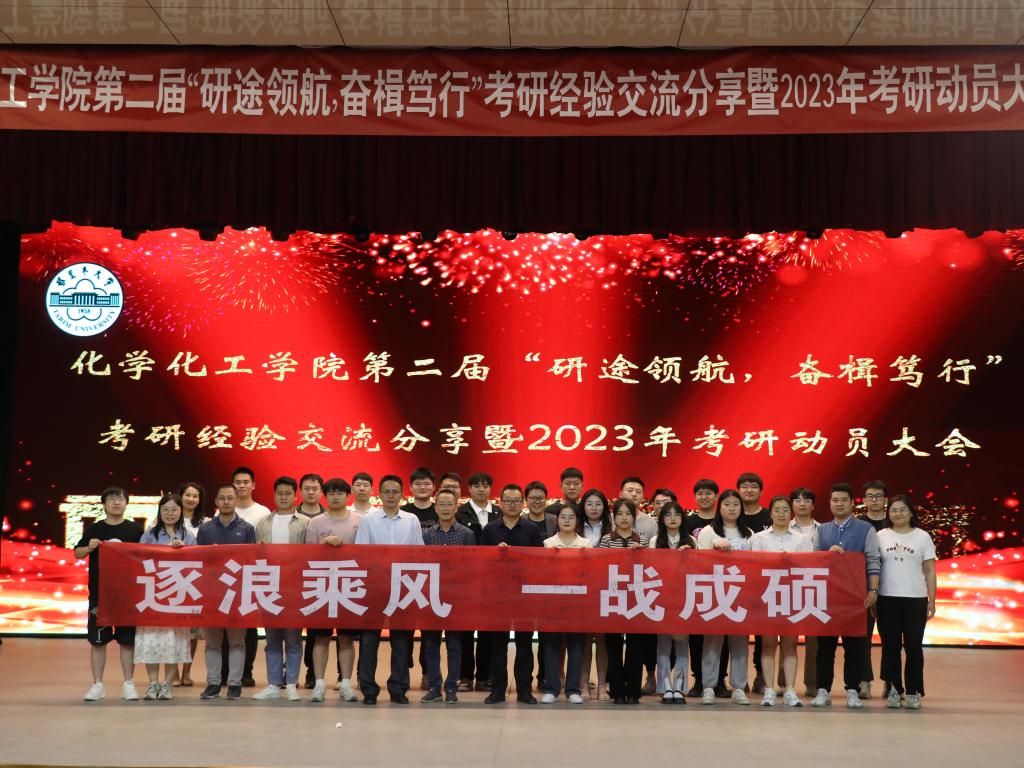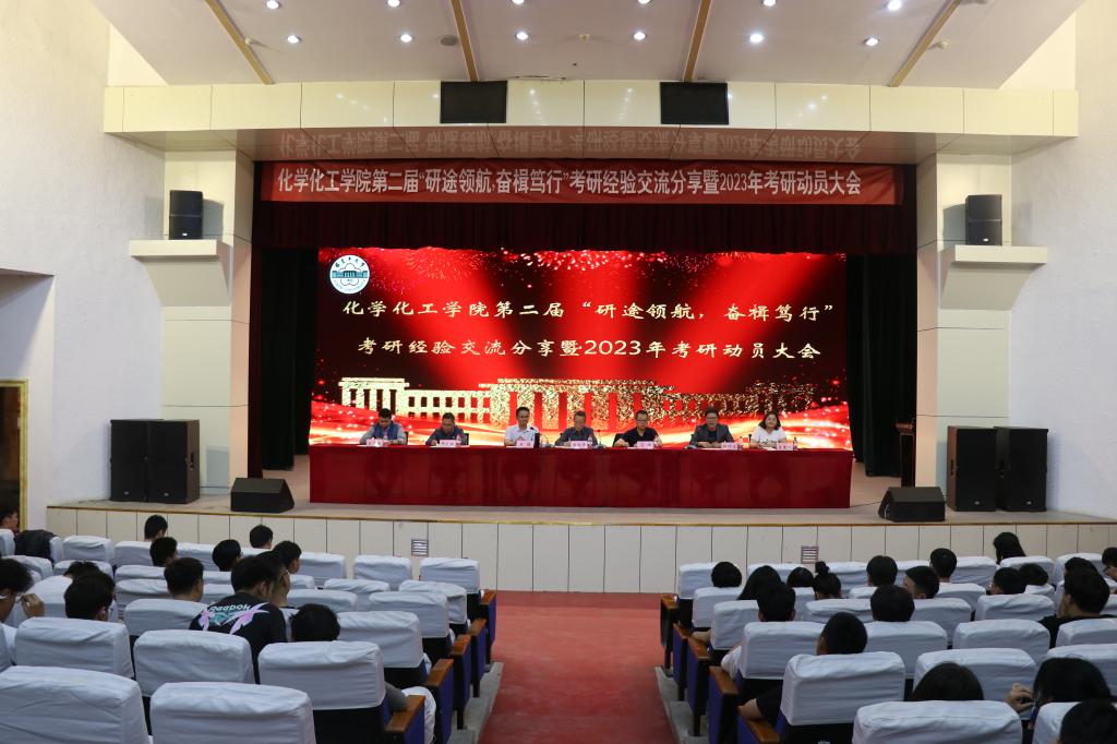 为深入开展学习贯彻习近平新时代中国特色社会主义思想主题教育,认真贯彻落实党的二十大精神,将主题教育成效转化为推进学院学风建设工作的生动实践,进一步营造良好的考研学习氛围,搭建化工学子考研学习交流平台,聚焦解决学生考研过程中的具体问题,办实事、解民忧。51风流 于5月15日晚在大学生活动中心报告厅开展第二届“研途领航,奋楫笃行”考研经验交流分享暨2023年考研动员大会学院党委书记白红进教授,党委副书记、纪委书记马祥副教授,副院长殷雄教授,各系主任、专业负责人、学科负责人、硕士生导师,2020级班主任,2020级全体学生及2021级、2022级有意向考研的学生参加会议。会议由马祥主持。