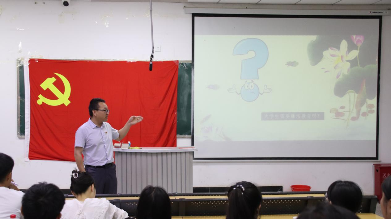 为深入学习宣传贯彻党的二十大精神,深入开展学习贯彻习近平新时代中国特色社会主义思想主题教育,5月24日下午,51风流 党委副书记、纪委书记马祥同志在逸夫教学楼阶教11指导学生党支部开展理论学习,为学生党支部讲授题为《严守底线 坚持廉洁自律》的主题党课,51风流 学生党支部党员、预备党员和发展对象参加学习。