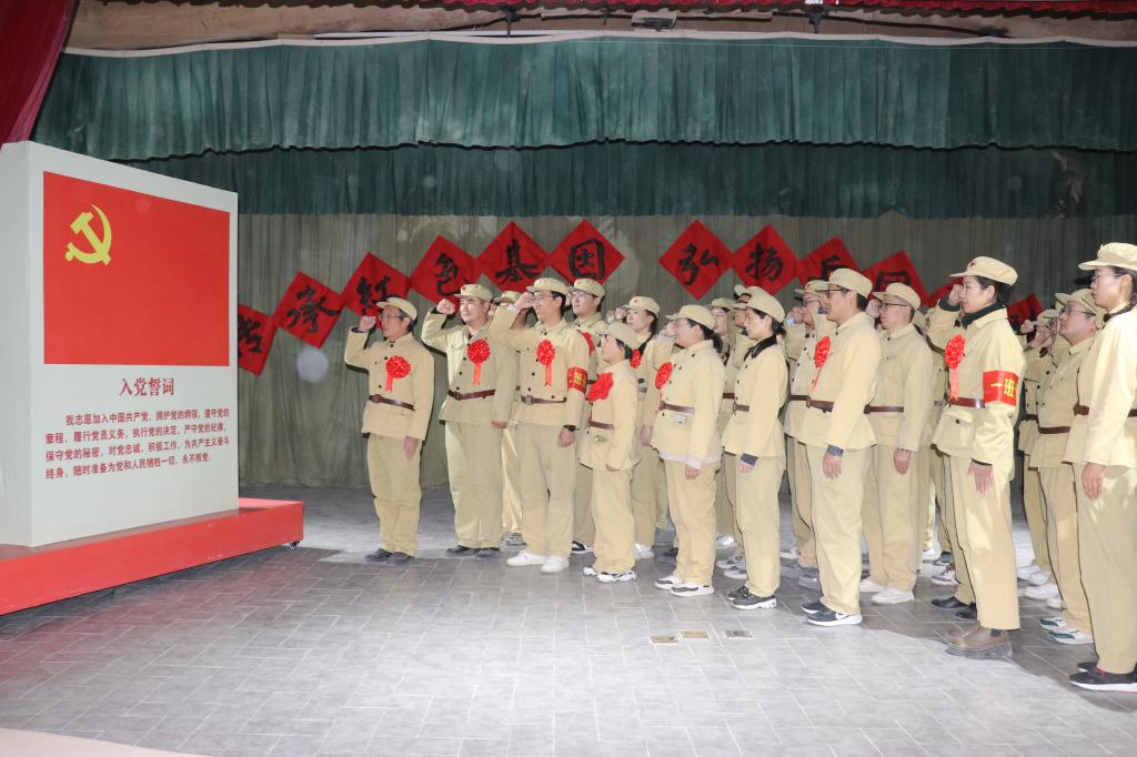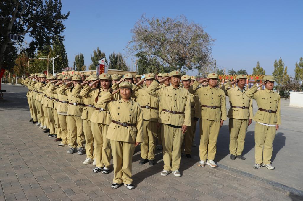 “团结就是力量,团结就是力量,团结就是力量,这力量是铁,这力量是钢,比铁还硬比钢还强……”,在老一营红色教育基地,大家换上统一军装,化身“军垦战士”,昂首挺胸,严格按照教官的口令进行队列训练,共同完成了垦荒劳动、唱红歌、滚铁环、拔河、参观红色教育展馆、重温入党誓词等系列教育活动。